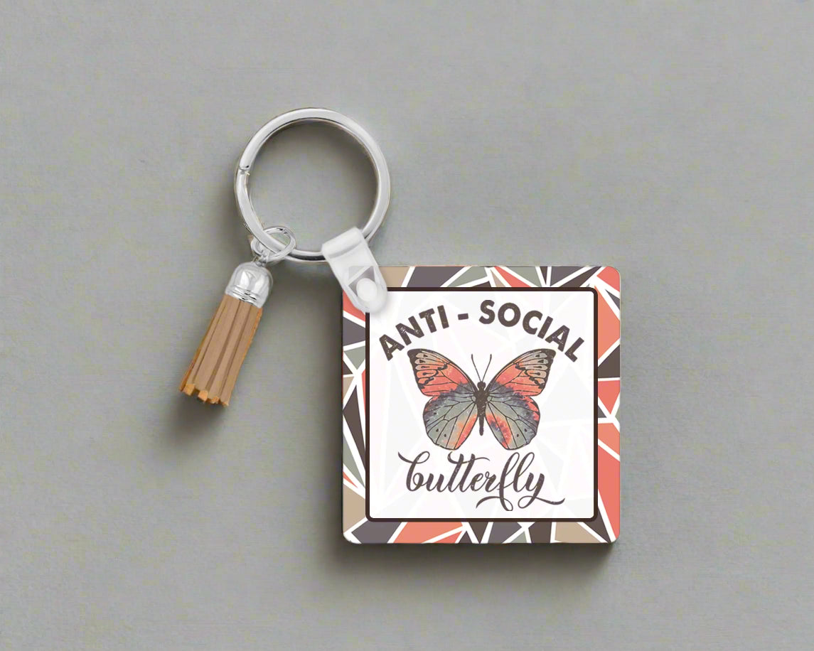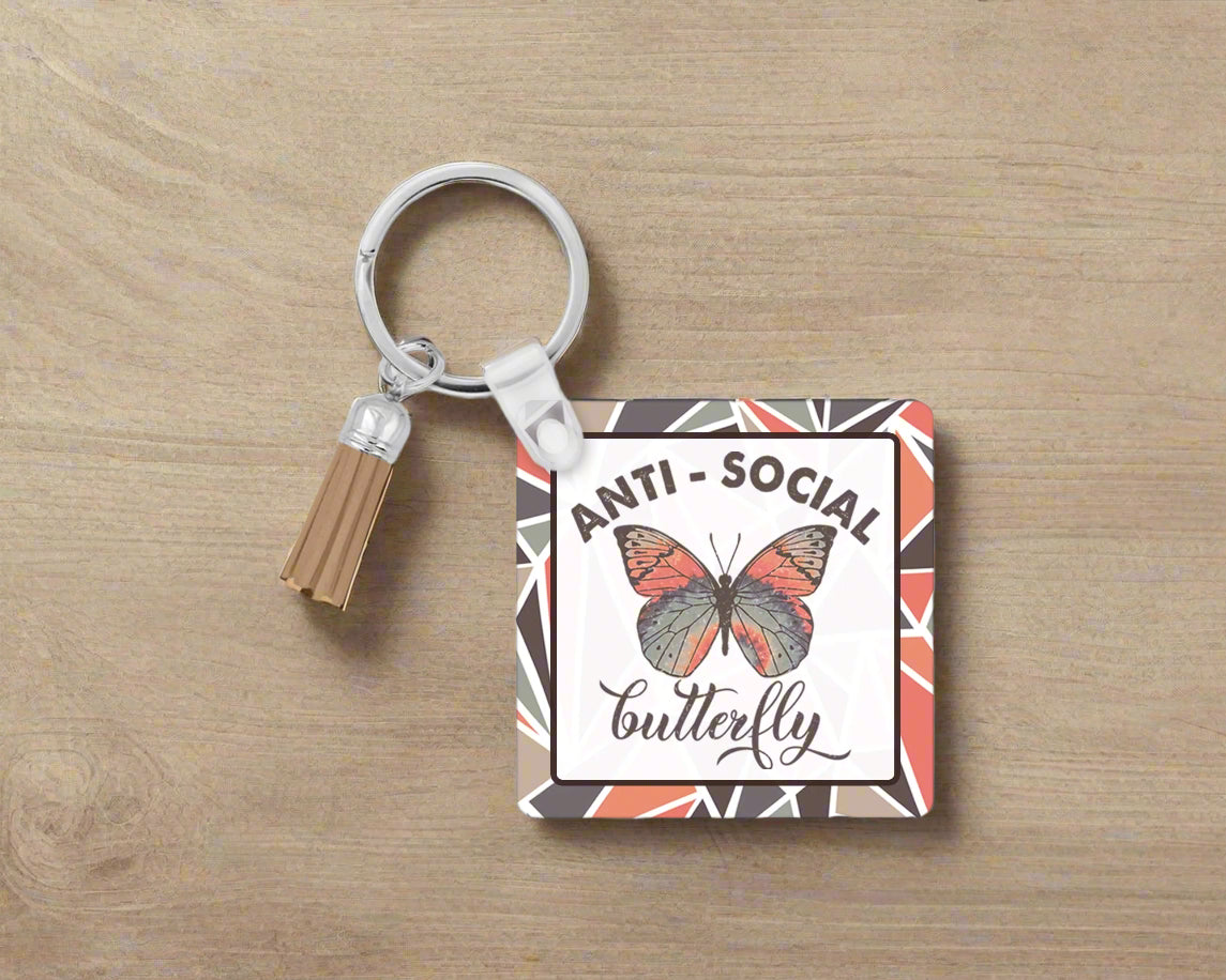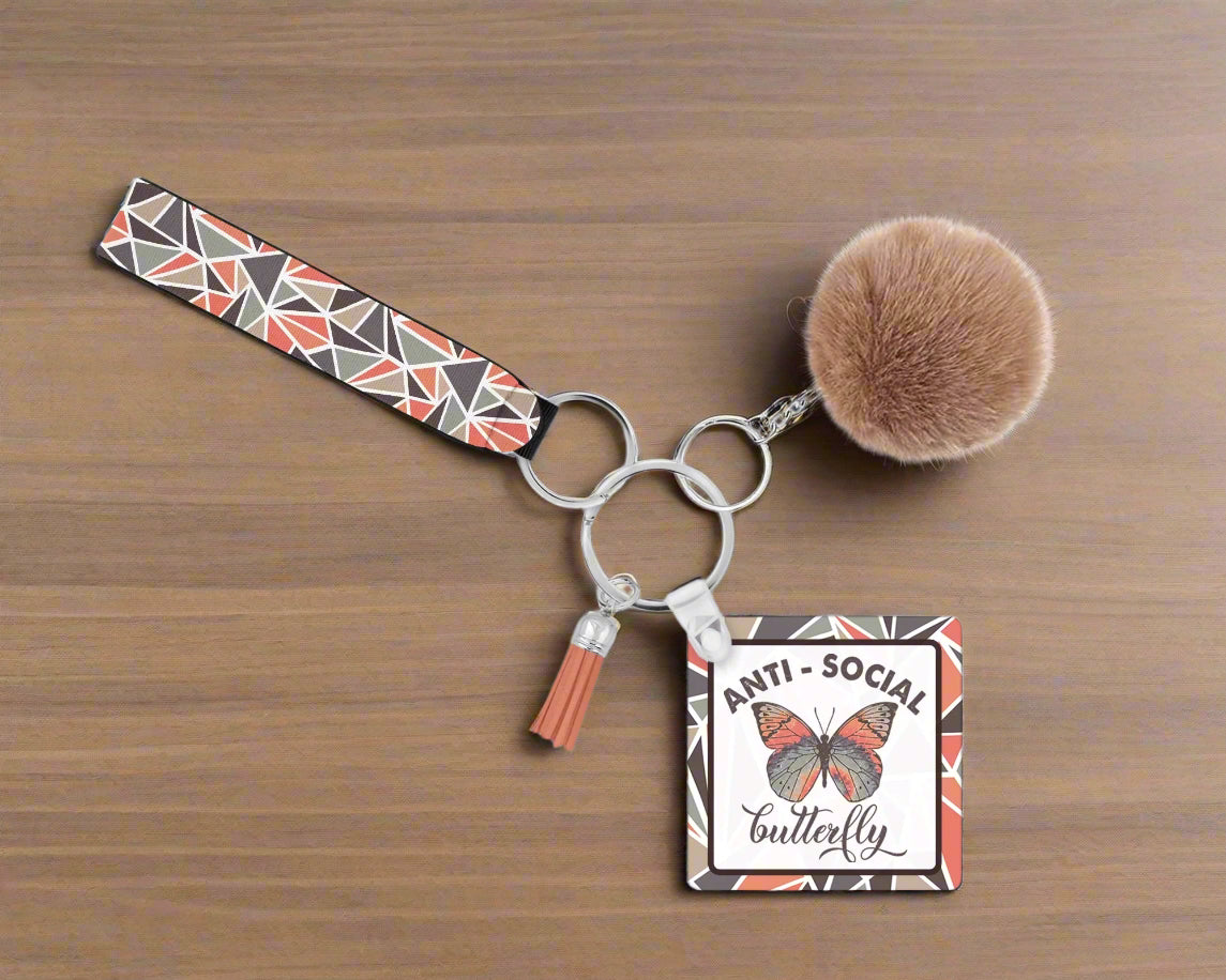Anti-Social Butterfly Keychain Wristlet – Embrace Your Unapologetic Vibe! 🦋 Butterfly Back Pack Tag - Keychain Gift For Introverts