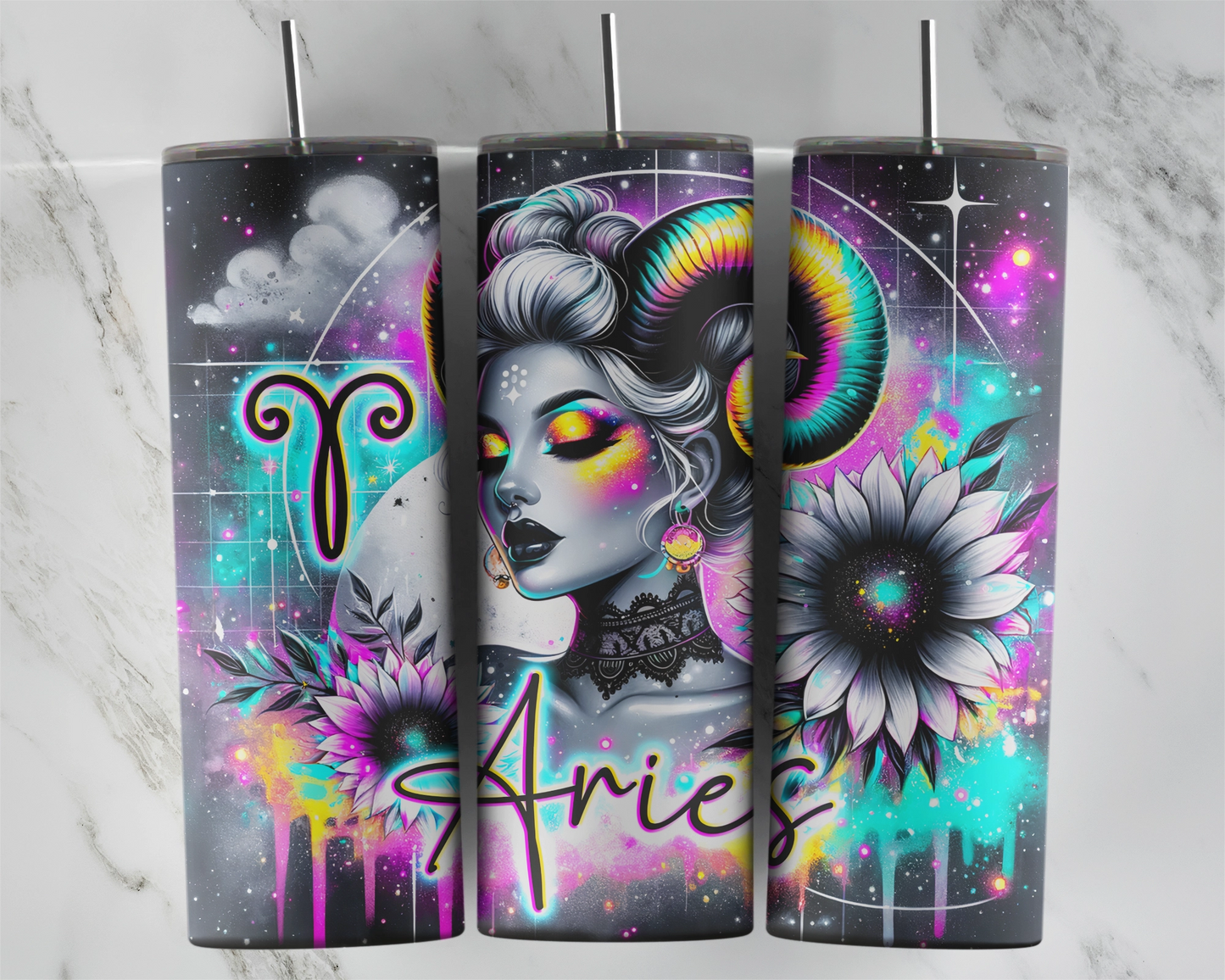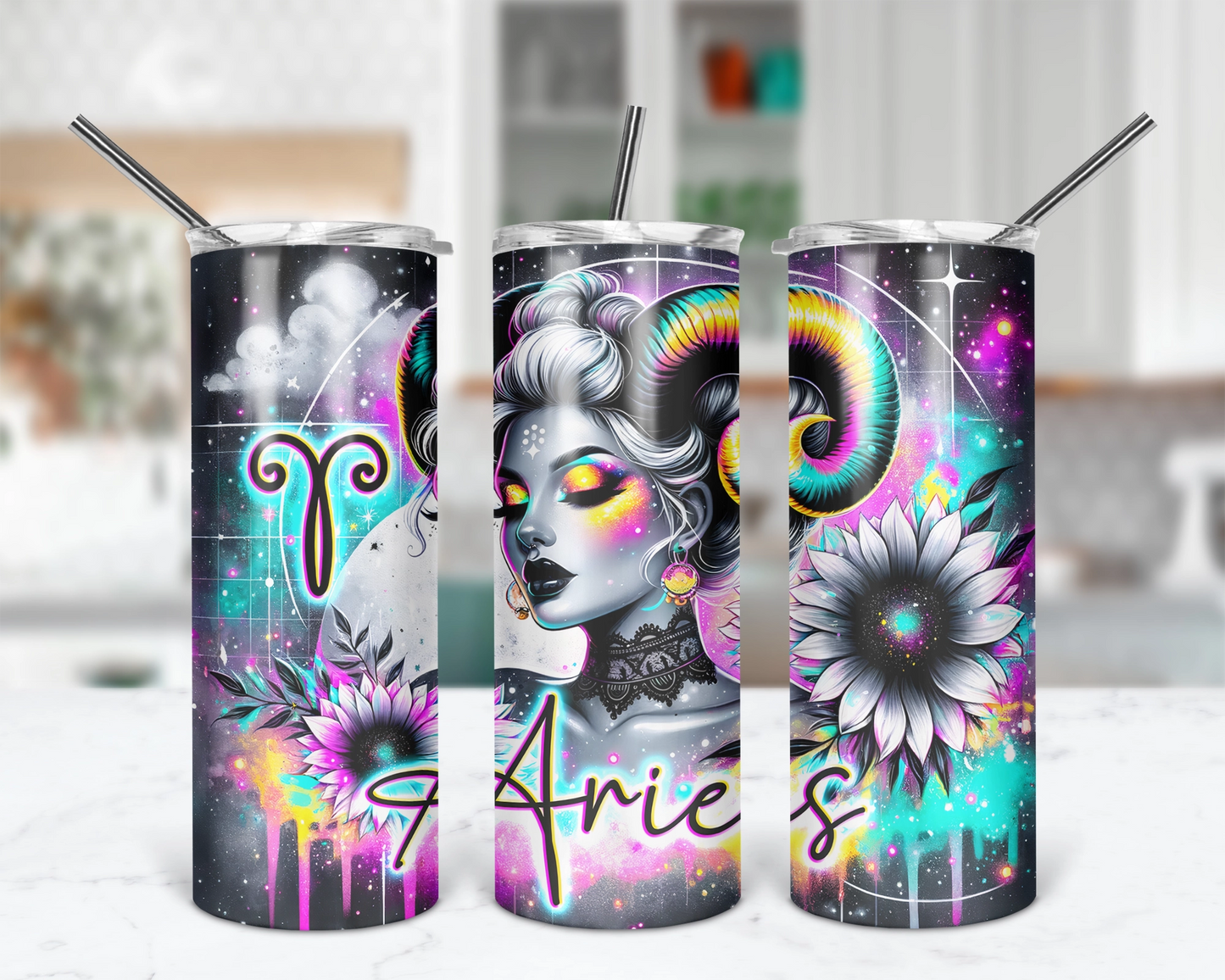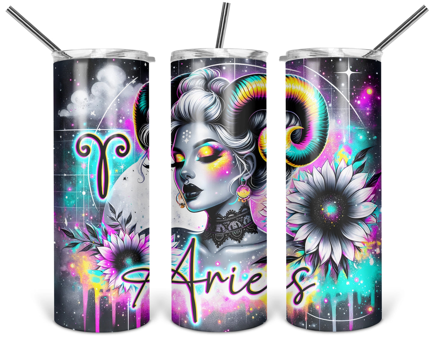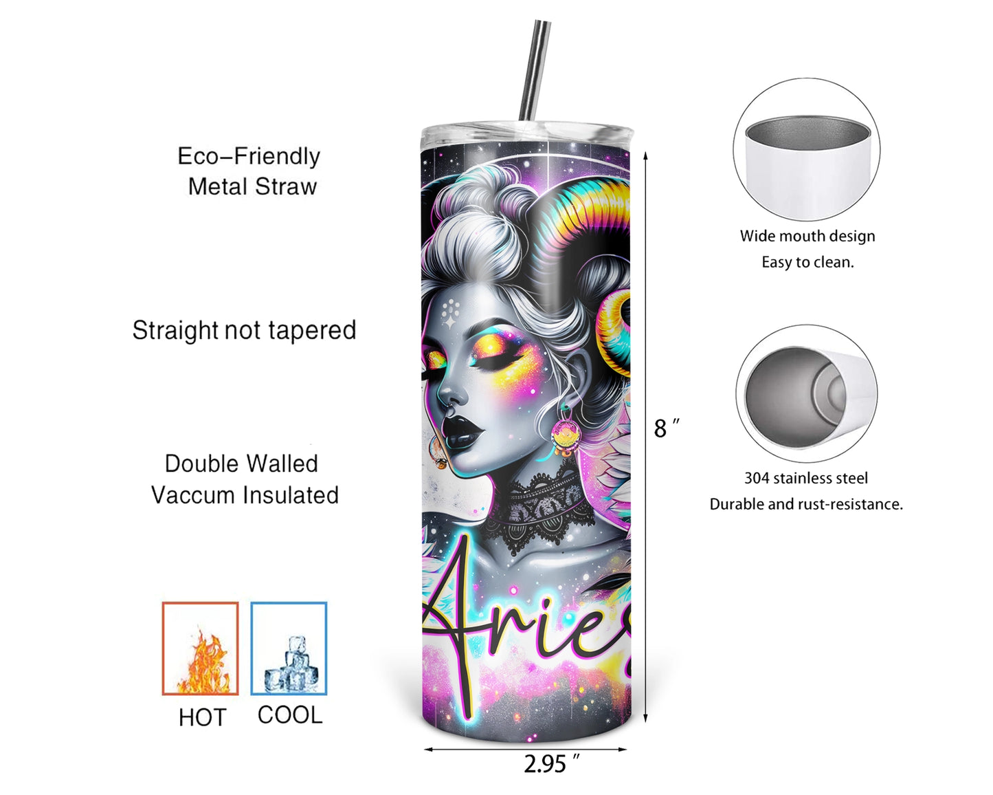 Aries Girl Tumbler / Zodiac Sign Tumbler With Straw / Horoscope Tumbler / Gift For Astrology Lovers