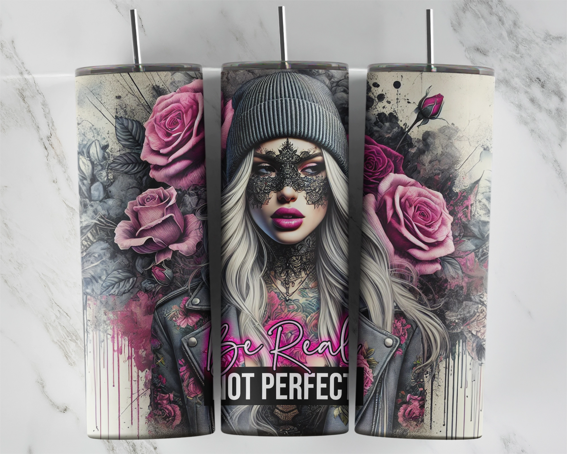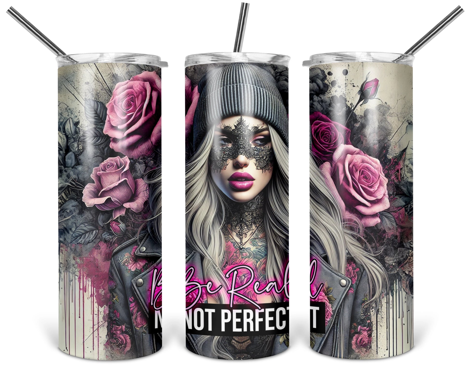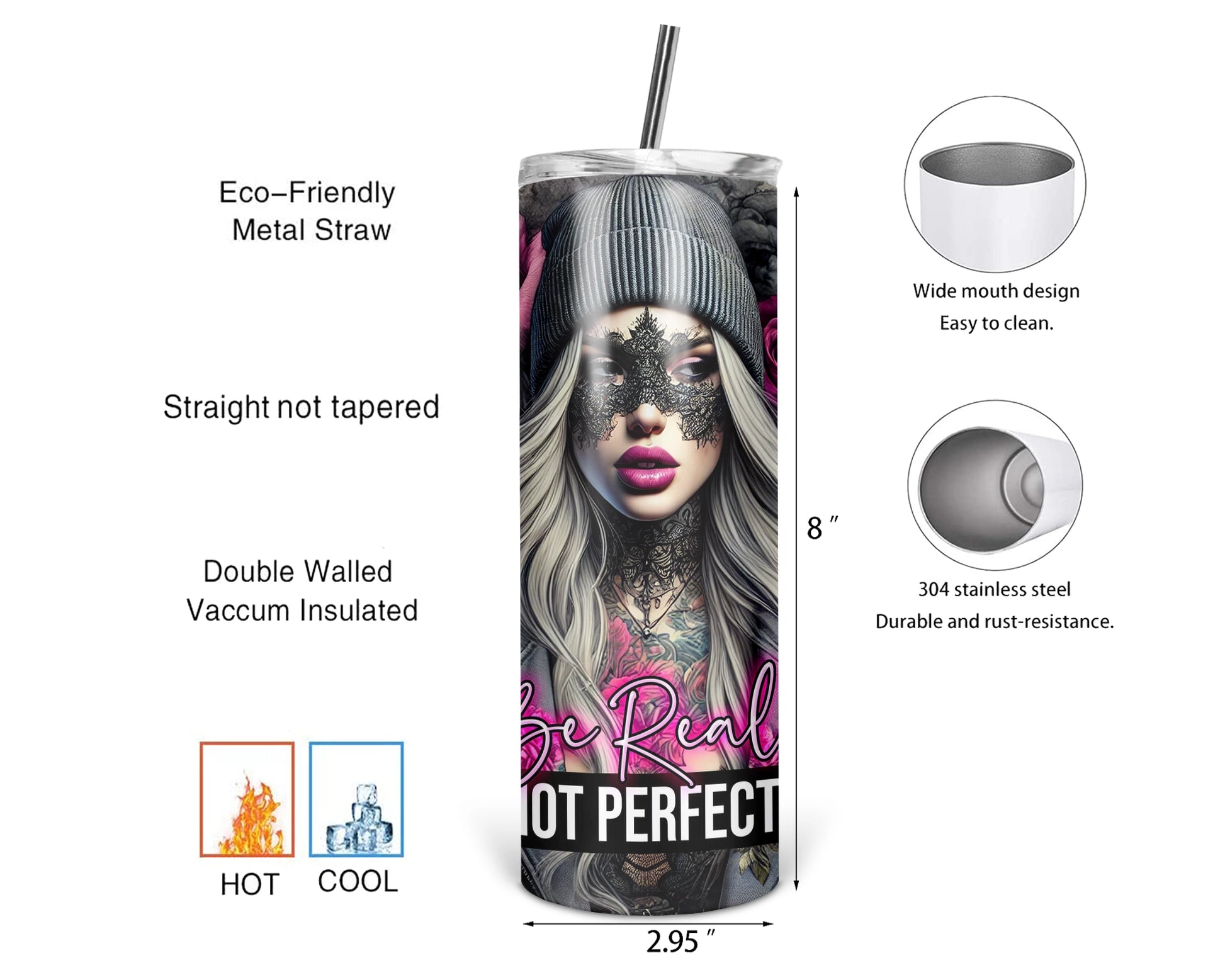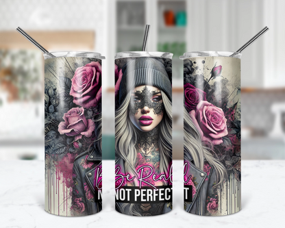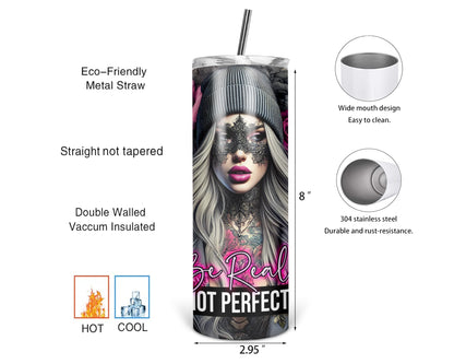 Be Real Not Perfect 20oz Tumbler – Sip with Confidence & Authenticity, Motivational Self Love Tumbler With Straw, Empowerment Tumbler For Her