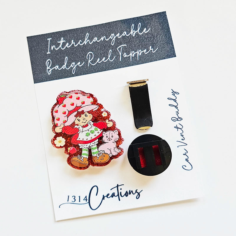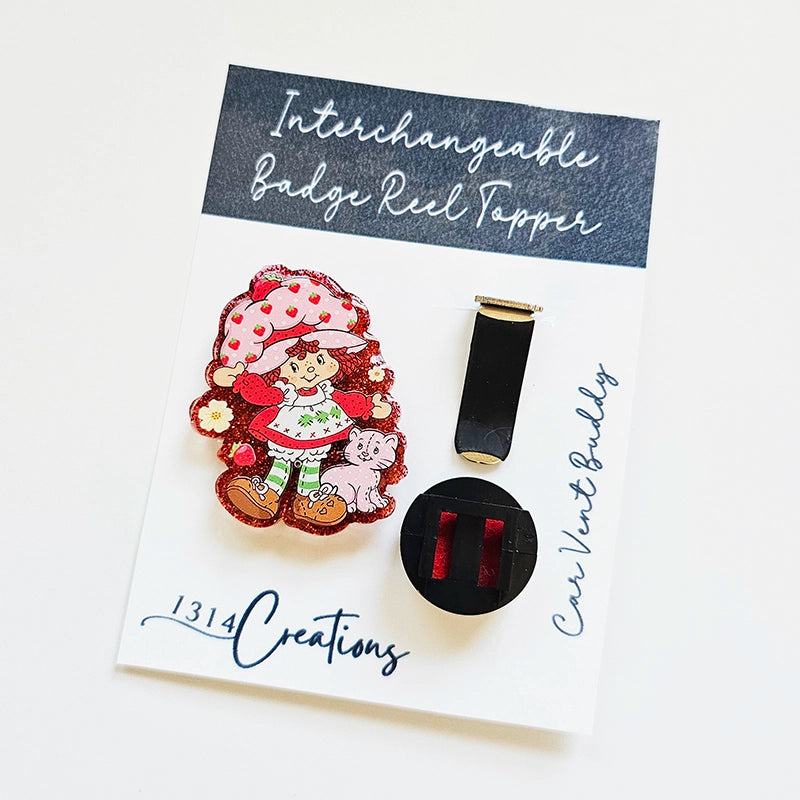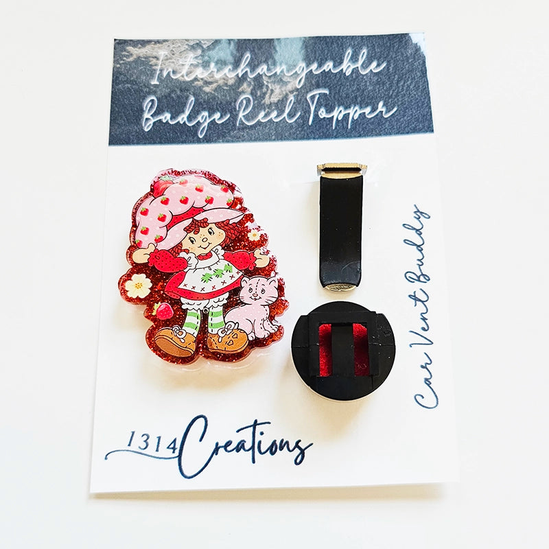 Berry Sweet Strawberry Girl Topper & Air Vent Clip š Cute Car Freshie & Badge Reel š Fun Fruity Decor for Work, Nurses & Car Accessories!