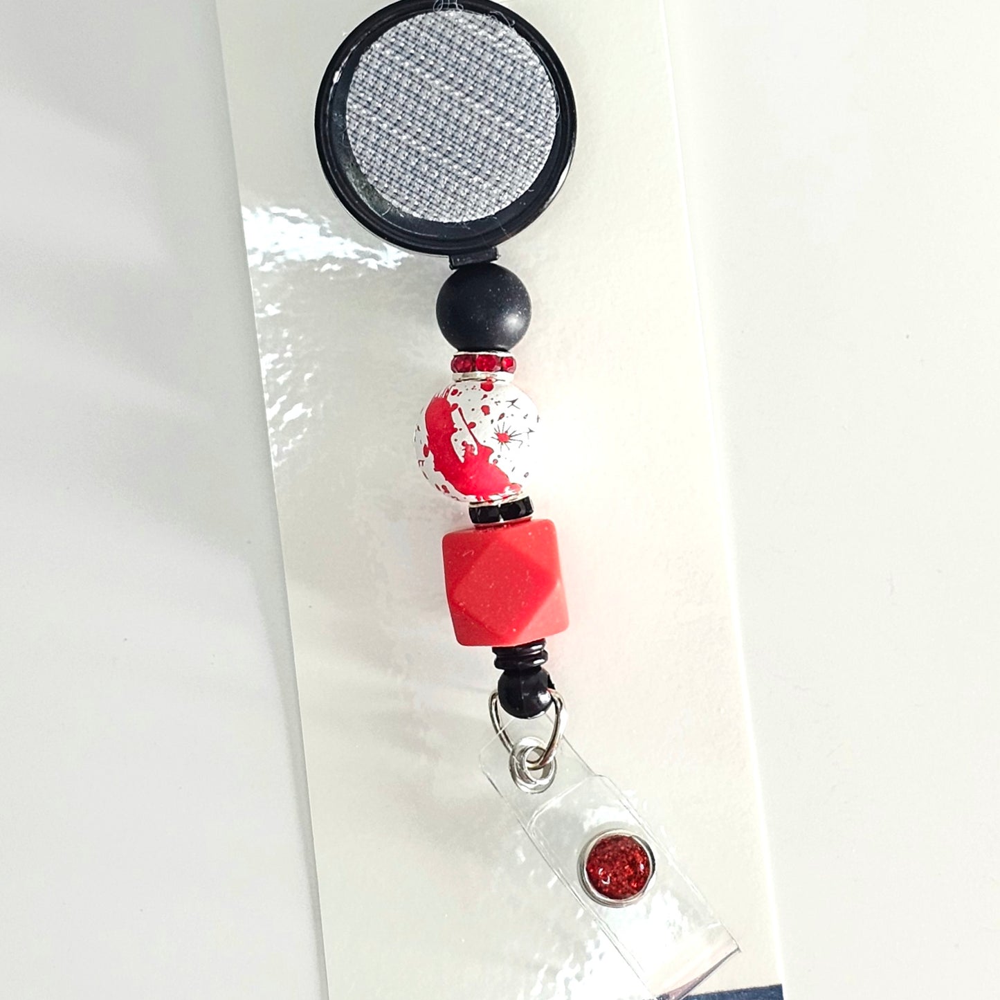 Make a bold statement with our Bloody Brilliant Beaded Interchangeable Badge Reel Clip! This eye-catching clip features a striking blood splatter pattern, perfect for adding a spooky touch to your accessories. Crafted from high-quality materials, it pairs seamlessly with our horror-inspired interchangeable badge reel toppers, allowing you to showcase your unique style. The sturdy construction ensures durability, while the convenient velcro backing makes swapping toppers a breeze. Ideal for Halloween enthusiasts, healthcare professionals, or anyone looking to add a playful yet eerie flair to their uniform, this badge reel clip is sure to turn heads and spark conversations! 🩸🔪✨ #HorrorStyle #BloodSplatterBadgeReel #InterchangeableAccessories