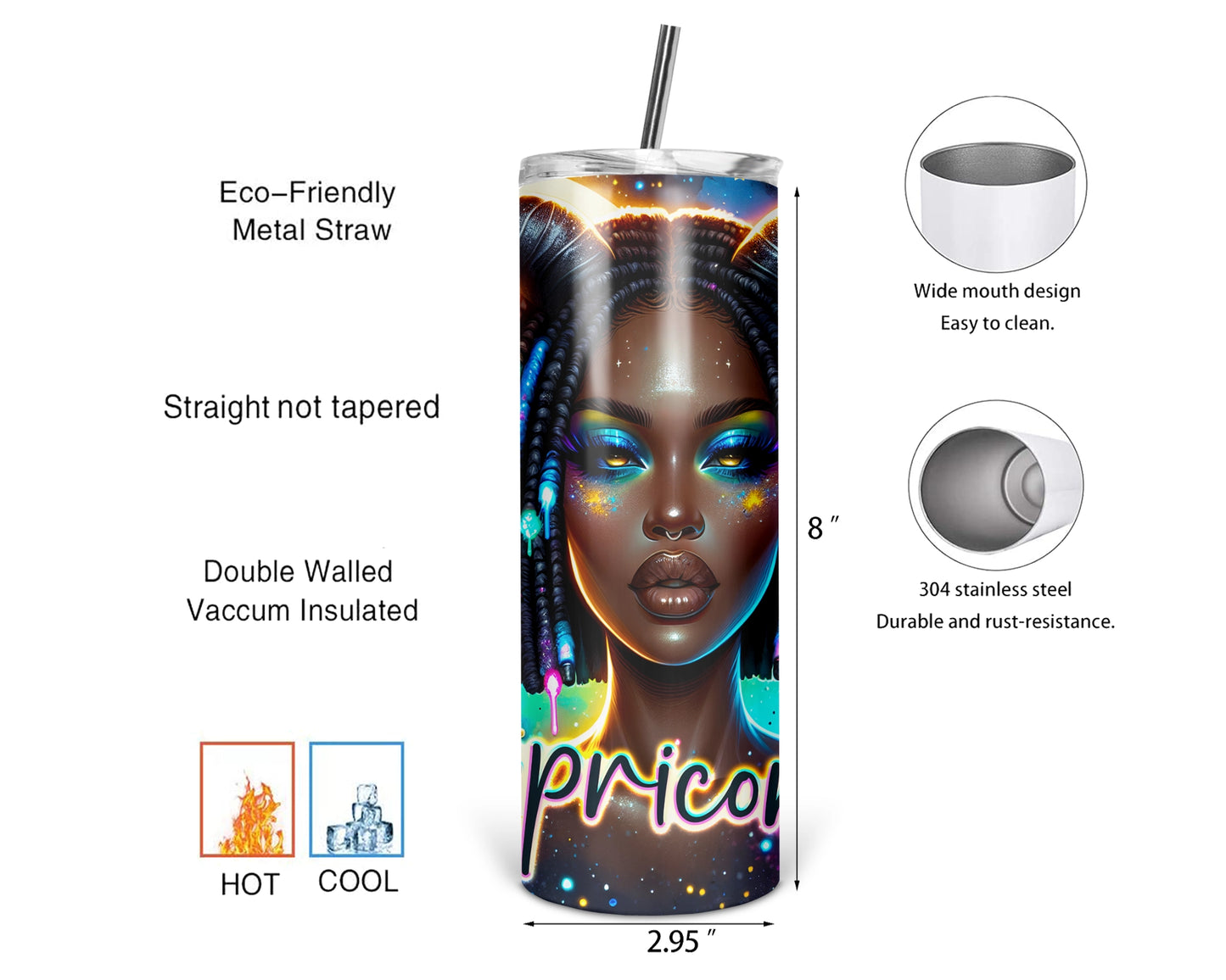 Capricorn Girl Tumbler | Zodiac Sign Tumbler With Straw | Astrology Gift for Capricorn | Ambitious Boss Babe Tumbler