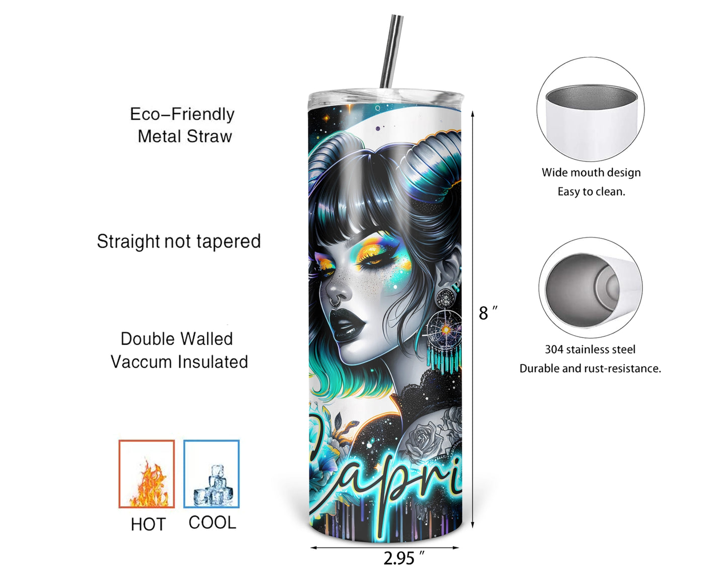 Capricorn Girl Tumbler / Zodiac Sign Tumbler With Straw / Horoscope Tumbler / Gift For Astrology Lovers