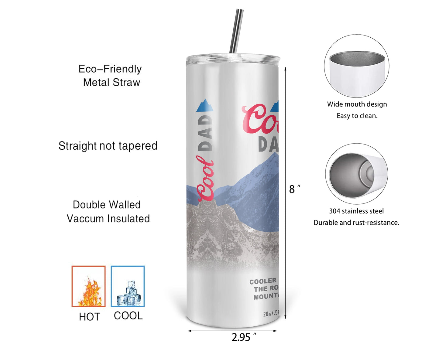 Introducing the "Cool Dad" 20oz Tumbler – because every dad deserves a frosty beverage and some cool cred! This tumbler is a hilarious twist on the iconic Coors logo, proudly declaring "Cool Dad" and "Cooler than the rocky mountains" in true beer lover fashion. Perfect for the dad who's as chill as his drink – even on the go! 🕶️❄️🏔️#CoolDad #DadSwag #TumblerCheers