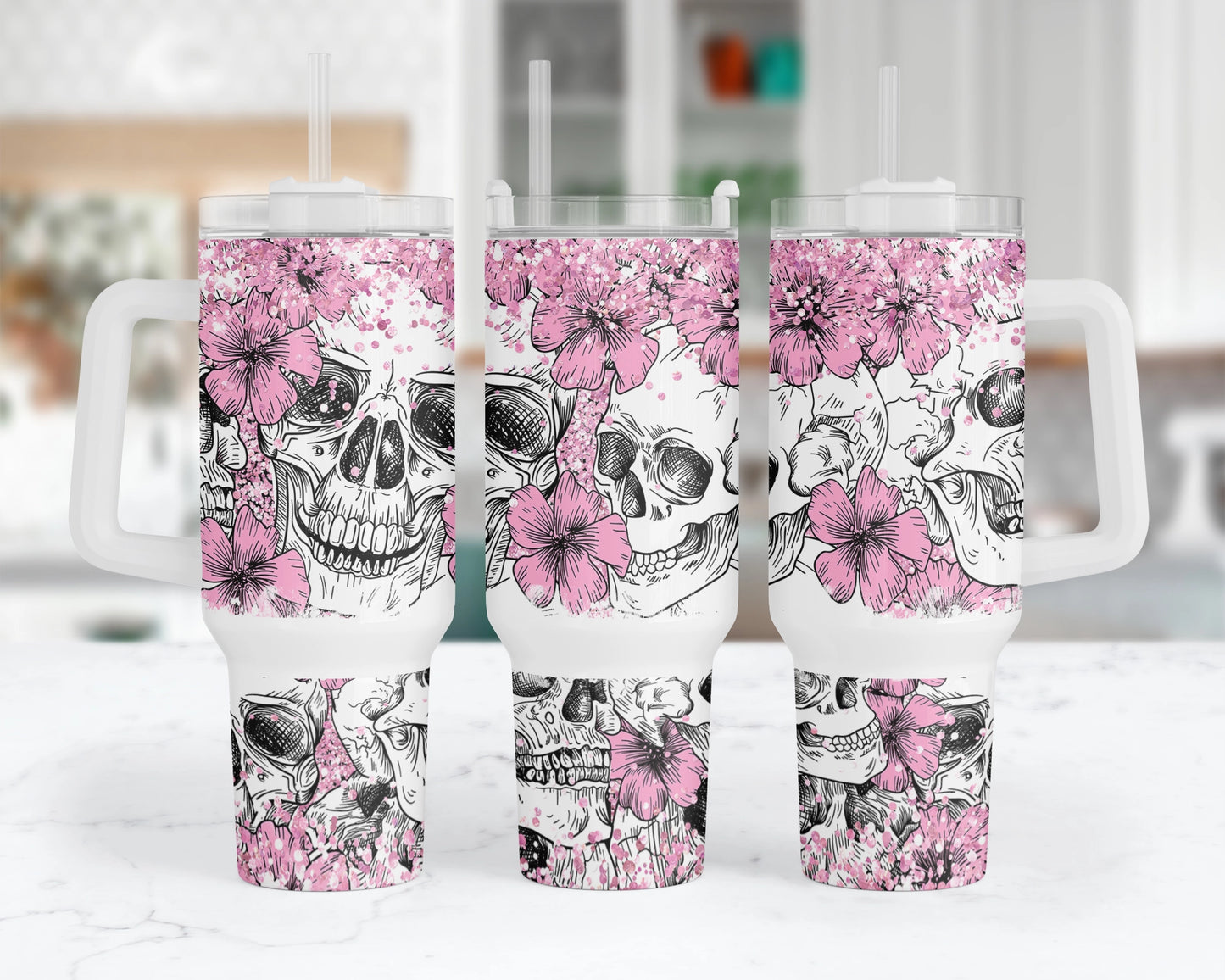 Flowering Phantoms Tumbler - 40oz Floral Skull Tumbler With Handle - Goth Girl Gift