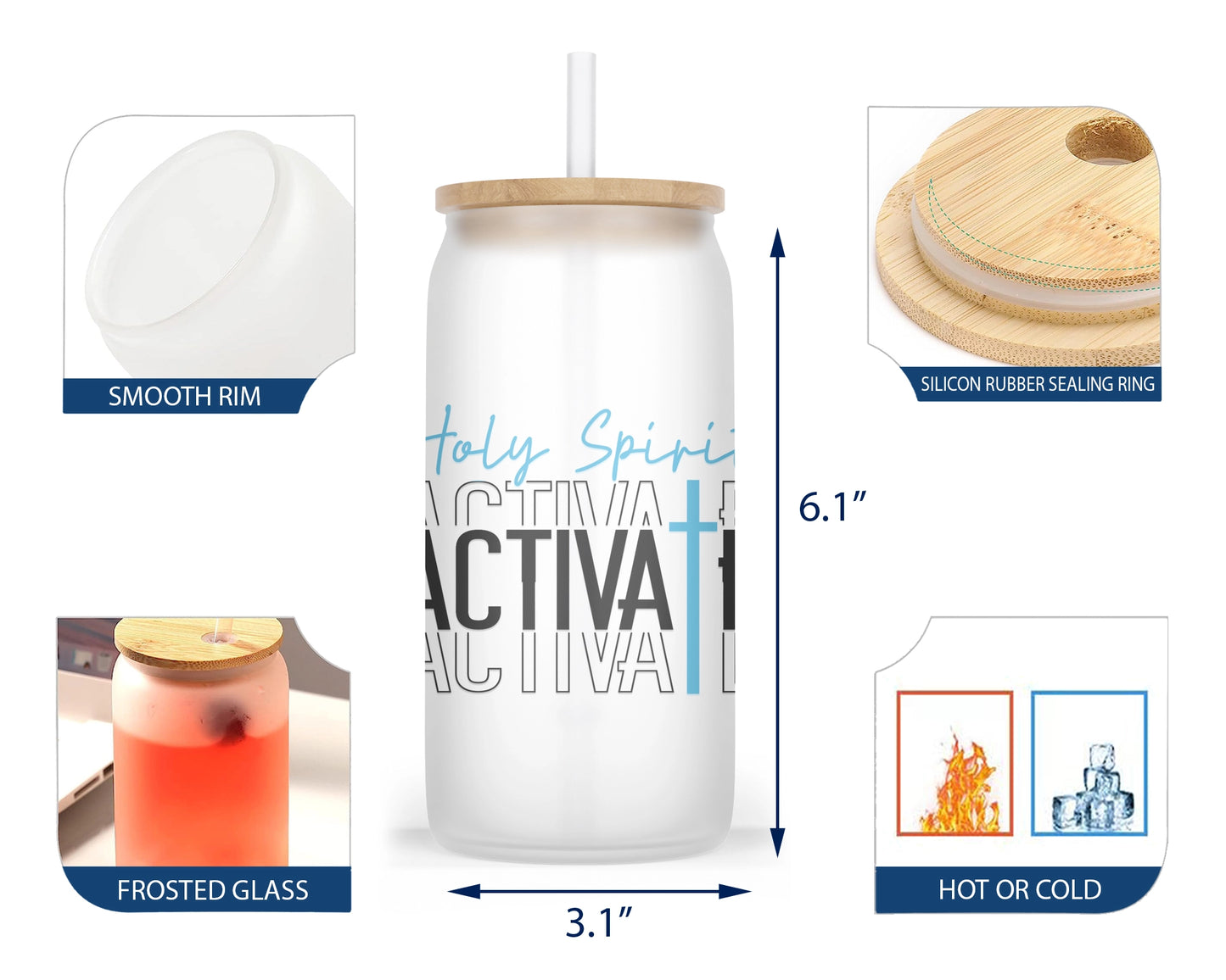 Drink in the faith with this Holy Spirit Activate Can Tumbler! This glass cup features a "Holy Spirit Activate" cross design to bring spiritual blessings to your favorite beverage. The perfect way to show your faith anytime!