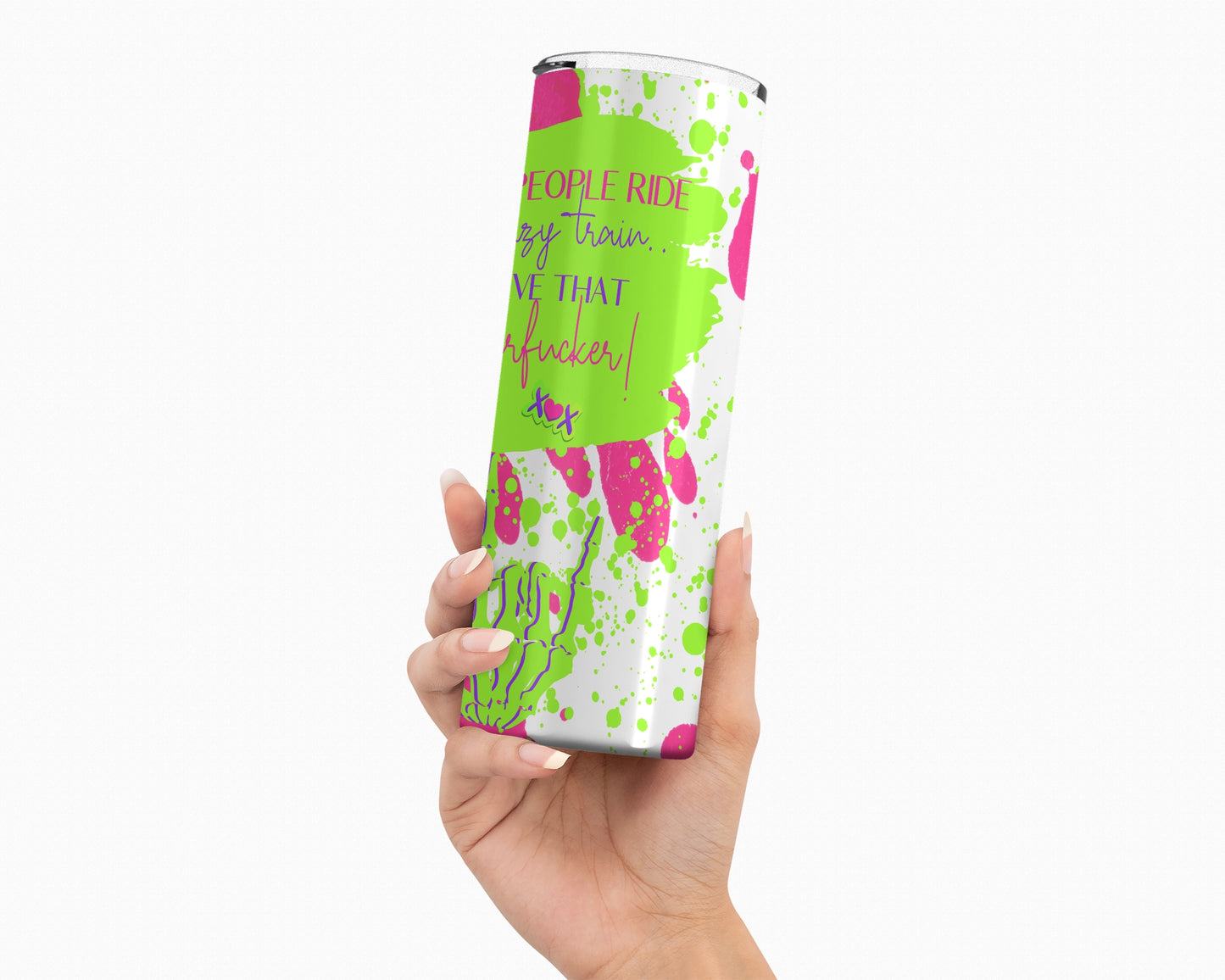 Who needs a ticket when you're the conductor of the crazy train? Sip in style with sass as you conquer chaos like a boss. Because let's face it, some people ride the crazy train, but you? You're the fearless conductor! Say goodbye to dull drinks and hello to vibrant vibes with its funky pink and green splatter design. Perfect for those who navigate life's twists and turns with a wink and a smirk.๐๐๐จ #CrazyTrainConductor #SipInStyle #EmbraceTheChaos #ConductorOfChaos #SassySips #LifeInTheFastLane