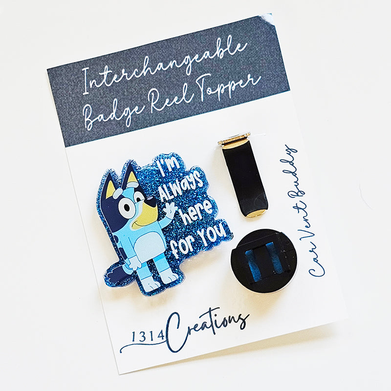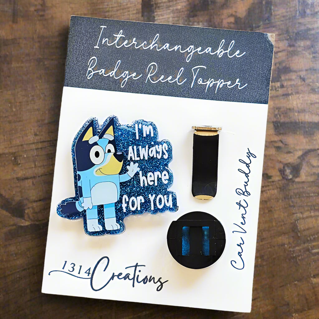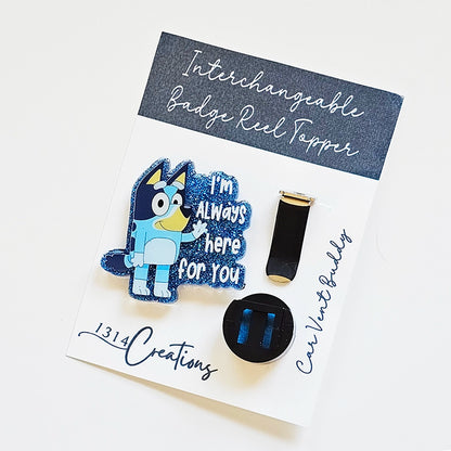 I'm Always Here For You Dog Lover Badge Reel Topper – Cute Blue Dog ID Holder 🐶 Perfect for Healthcare, Work Accessories & Car Freshie Gift