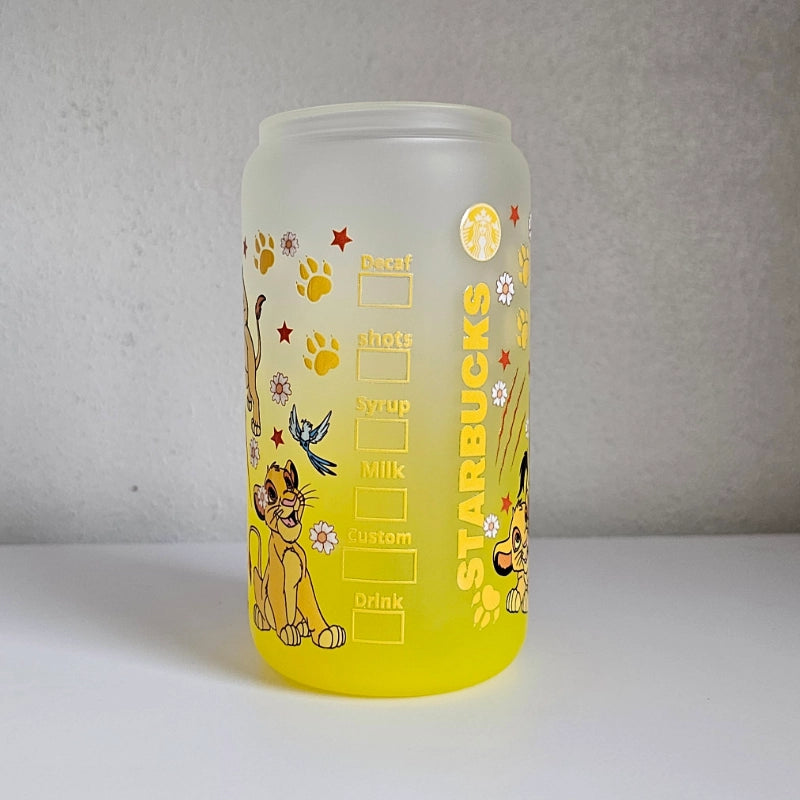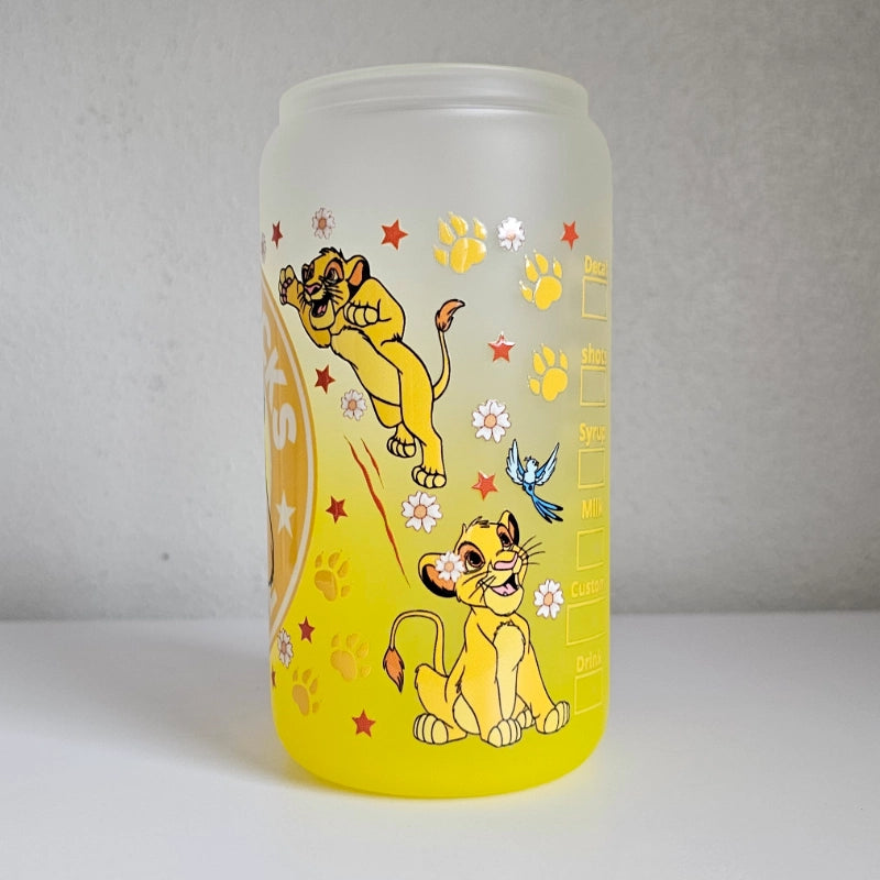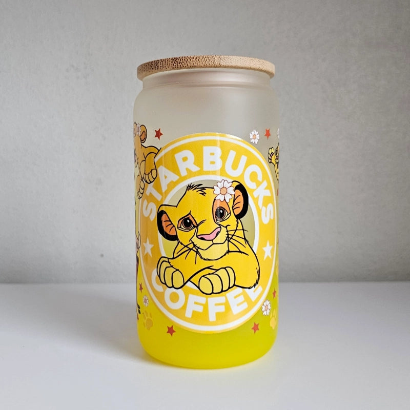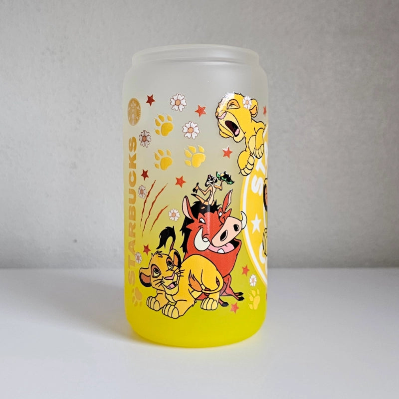 Bow down to the royalty of refreshments with our King of the Jungle 16oz Glass Tumbler – because why settle for a regular cup when you can sip in regal style with a cartoon lion cub and his entourage of sidekicks?