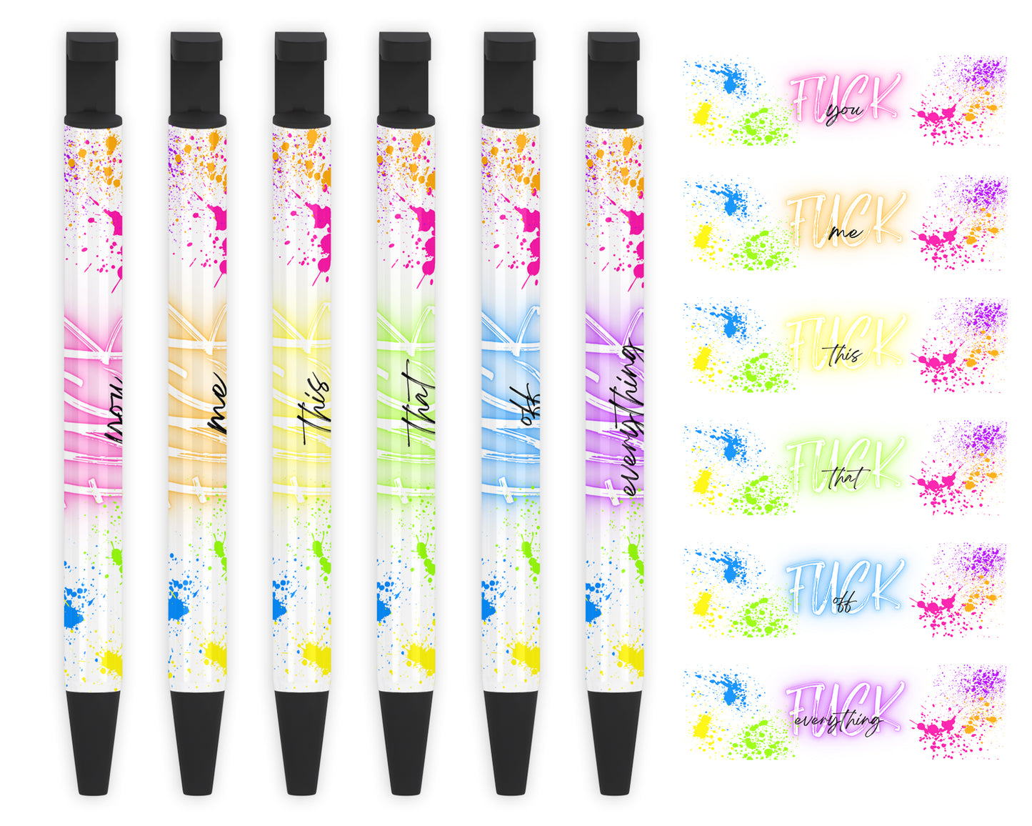 Introducing the Limitless Wordsmith Weekly Pen Set – because sometimes, life just needs a little extra oomph! With a different swear word for every day of the week, you'll never be at a loss for expressing yourself in the most colorful of terms. From "Fck You" Mondays to "Fck Everything" Fridays, these pens have got your back (or should we say, your mouth?). Crafted with sass and a touch of irreverence, they're perfect for venting frustrations, sharing laughs, or just adding a dash of spice to your daily grind. So go ahead, unleash the profanity and make every day a Fck Yeah kind of day!