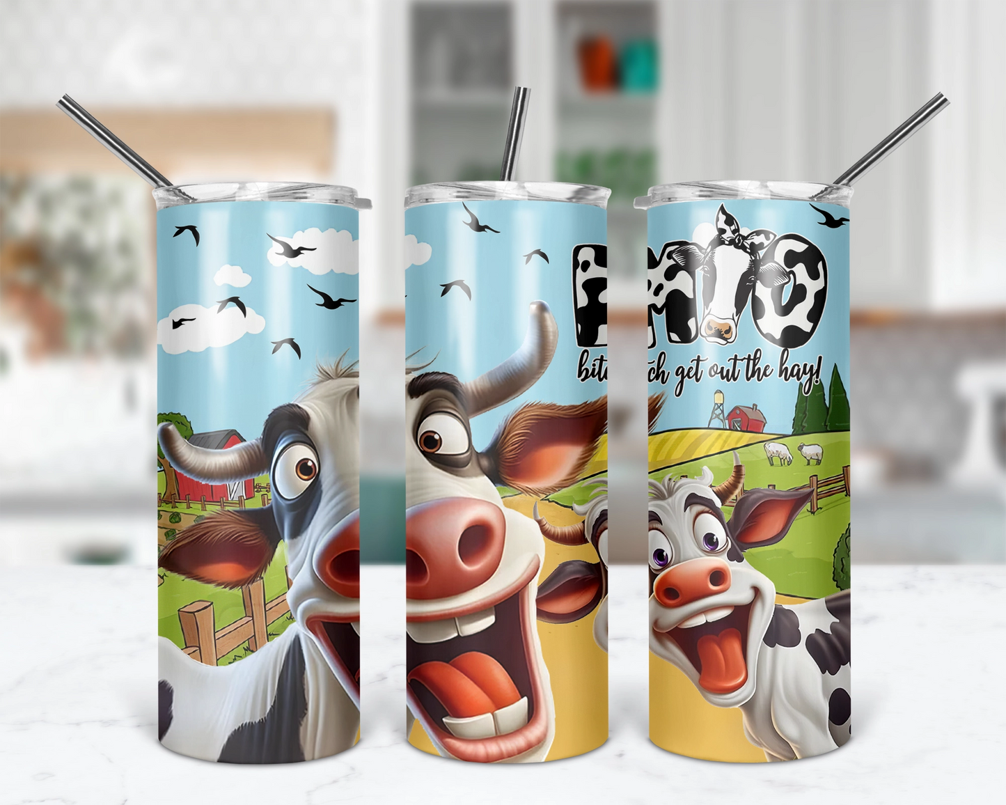 Moo Bitch Get Out The Hay / Funny 20oz Cow Tumbler With Straw / Gift For Farmers