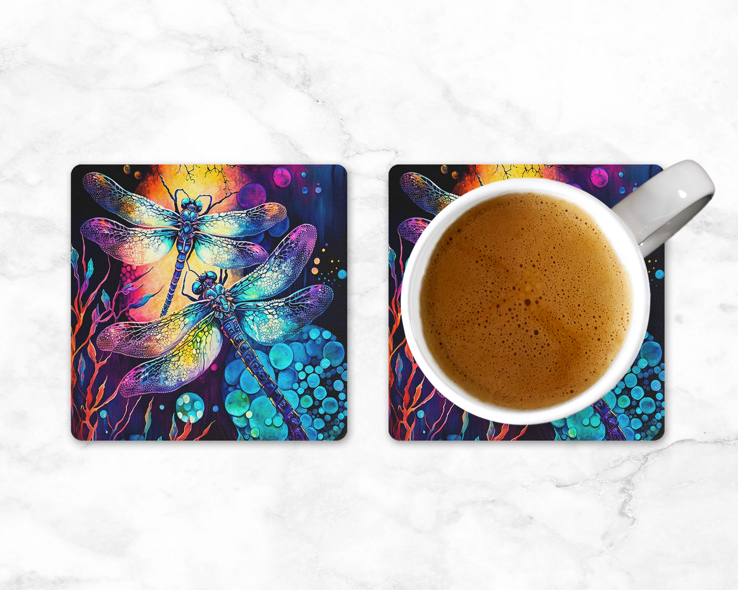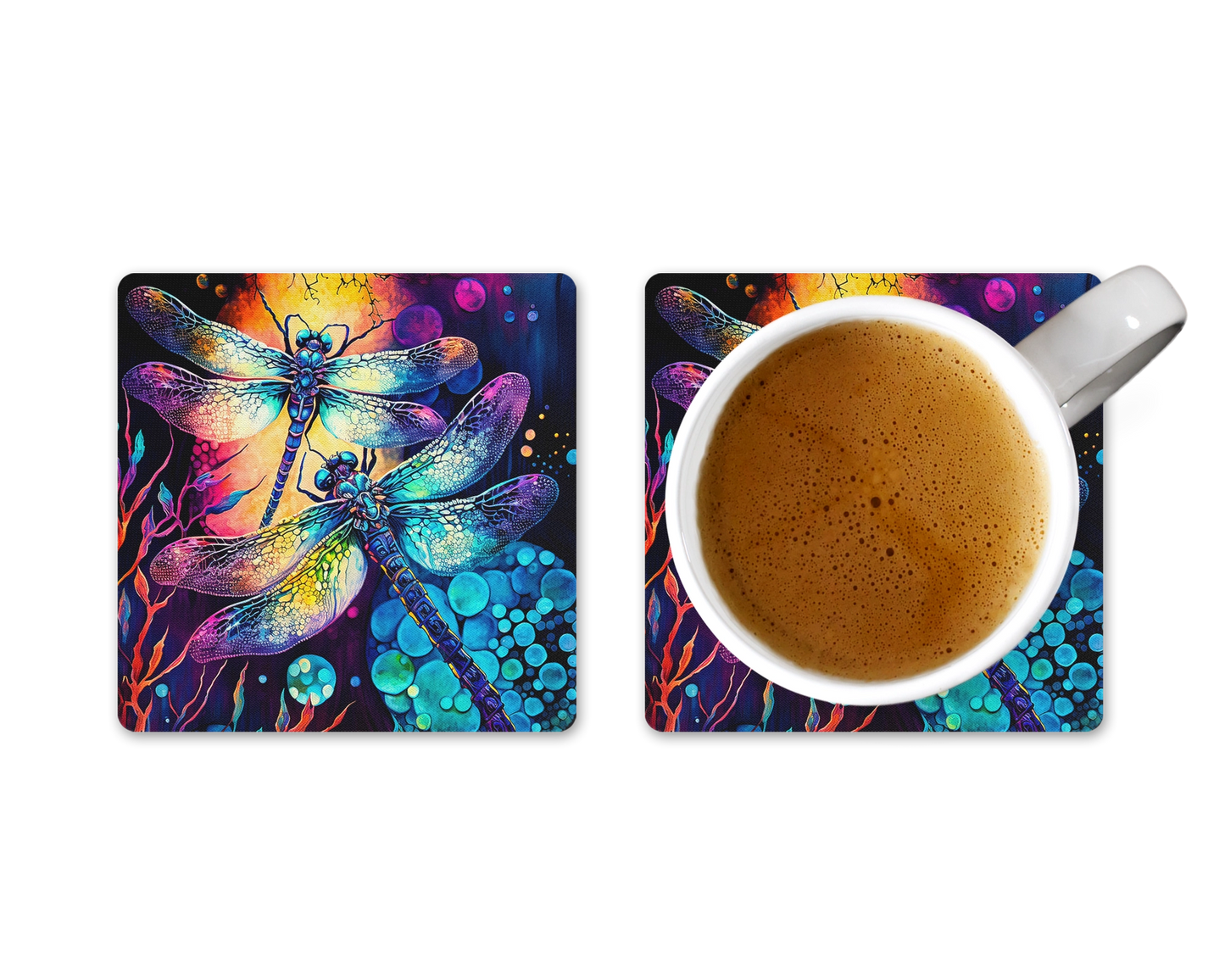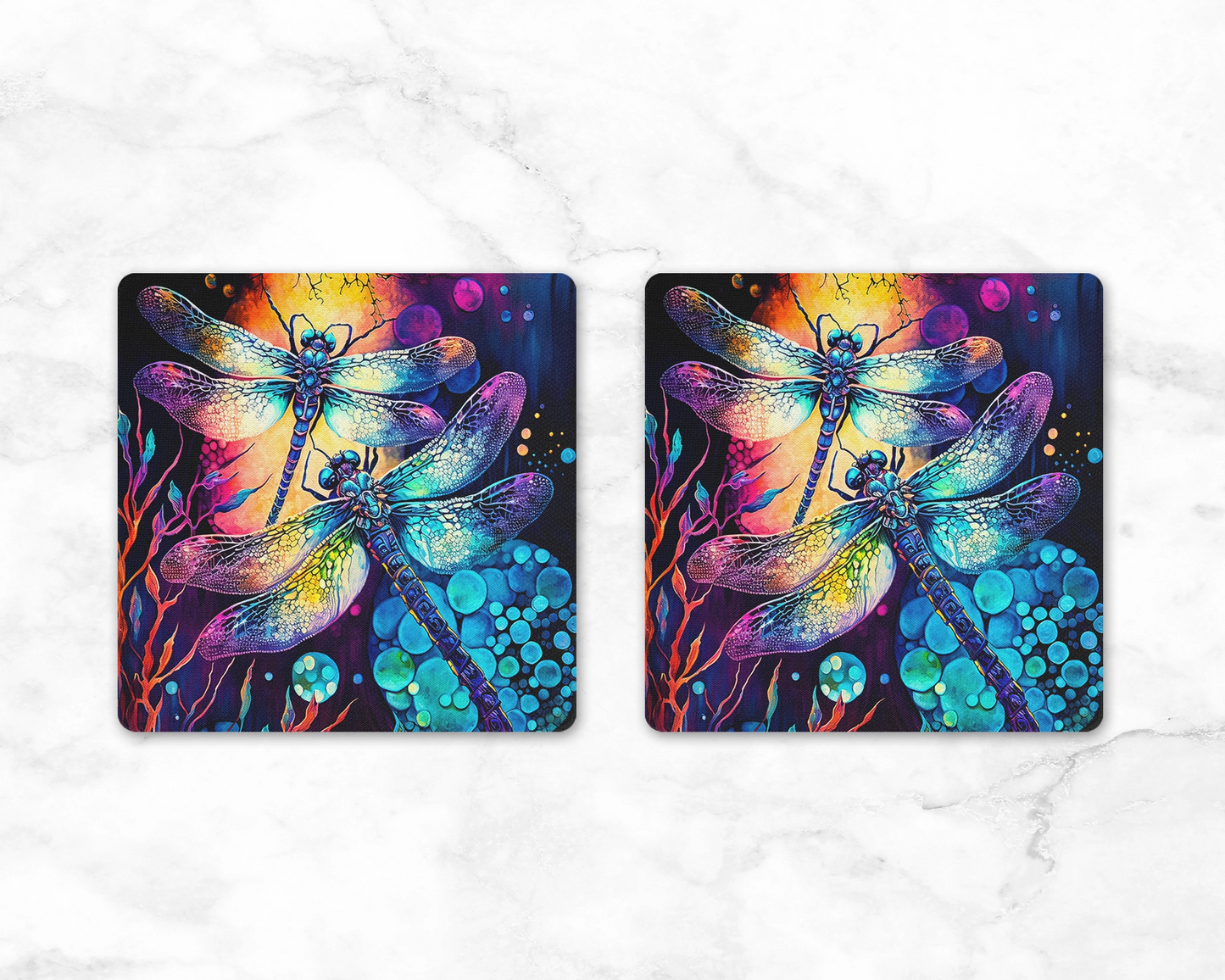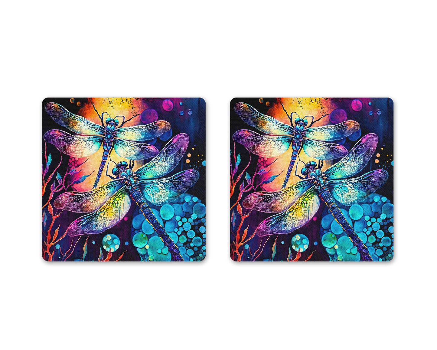 Get ready to dance with the dragons - well, dragonflies, that is! Introducing the Radiant Dragon Dance Coaster Set, because why settle for ordinary when you can have extraordinary? Add a burst of color and whimsy to your coffee table with these playful coasters featuring dancing dragonflies. Protect your surfaces in style while inviting a touch of magic into your space. Perfect for those who like to keep things fun and fabulous! #RadiantDragonDance #ColorfulCoasters #DragonflyMagic #DancingDragonflies 🌈✨🐉