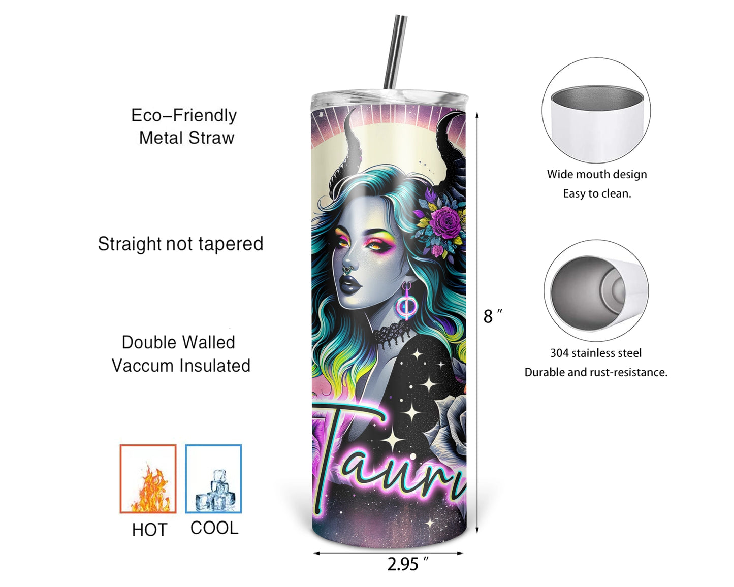 Taurus Girl Tumbler / Zodiac Sign Tumbler With Straw / Horoscope Tumbler / Gift For Astrology Lovers