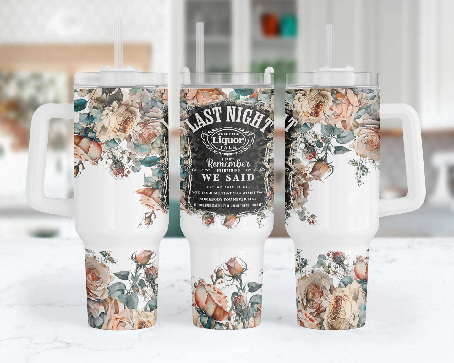 We Let The Liquor Talk Tumbler - 40oz Floral Tumbler With Handle - Gift For Wallen Fan